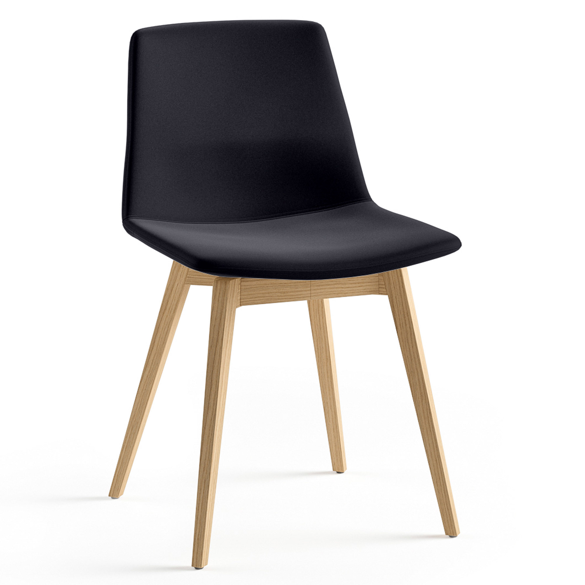 Matière : Coque en polypropylène, épaisseur 8 mm. Tissu 100% polyester non feu M1. Piètement en frêne massif vernis naturel équipé de patins en nylon.