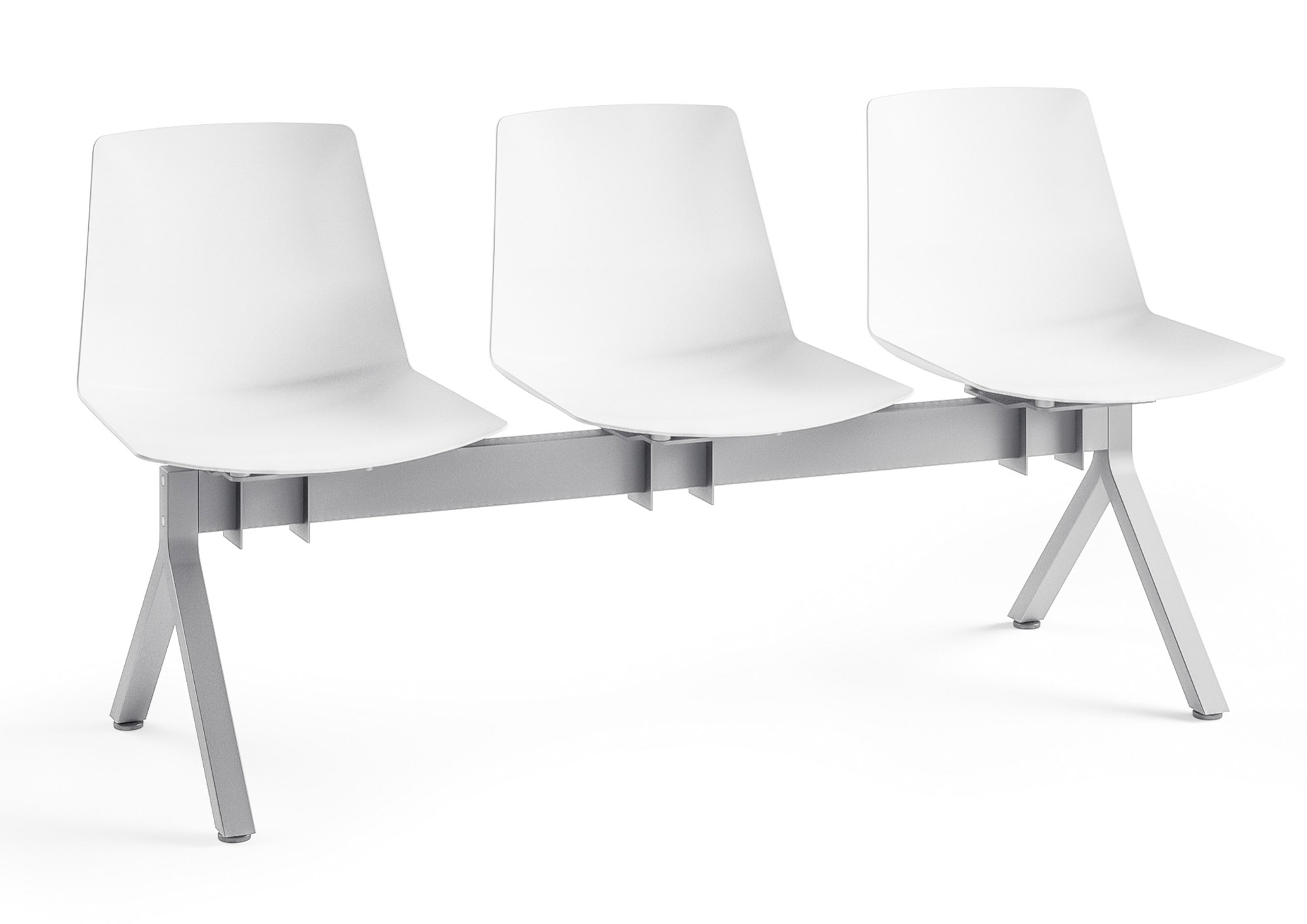 Matières : l'assise est dotée d'une coque résistante en polypropylène, épaisseur 8 mm. La structure de la poutre et des pieds est en acier, finition aluminium ou anthracite.