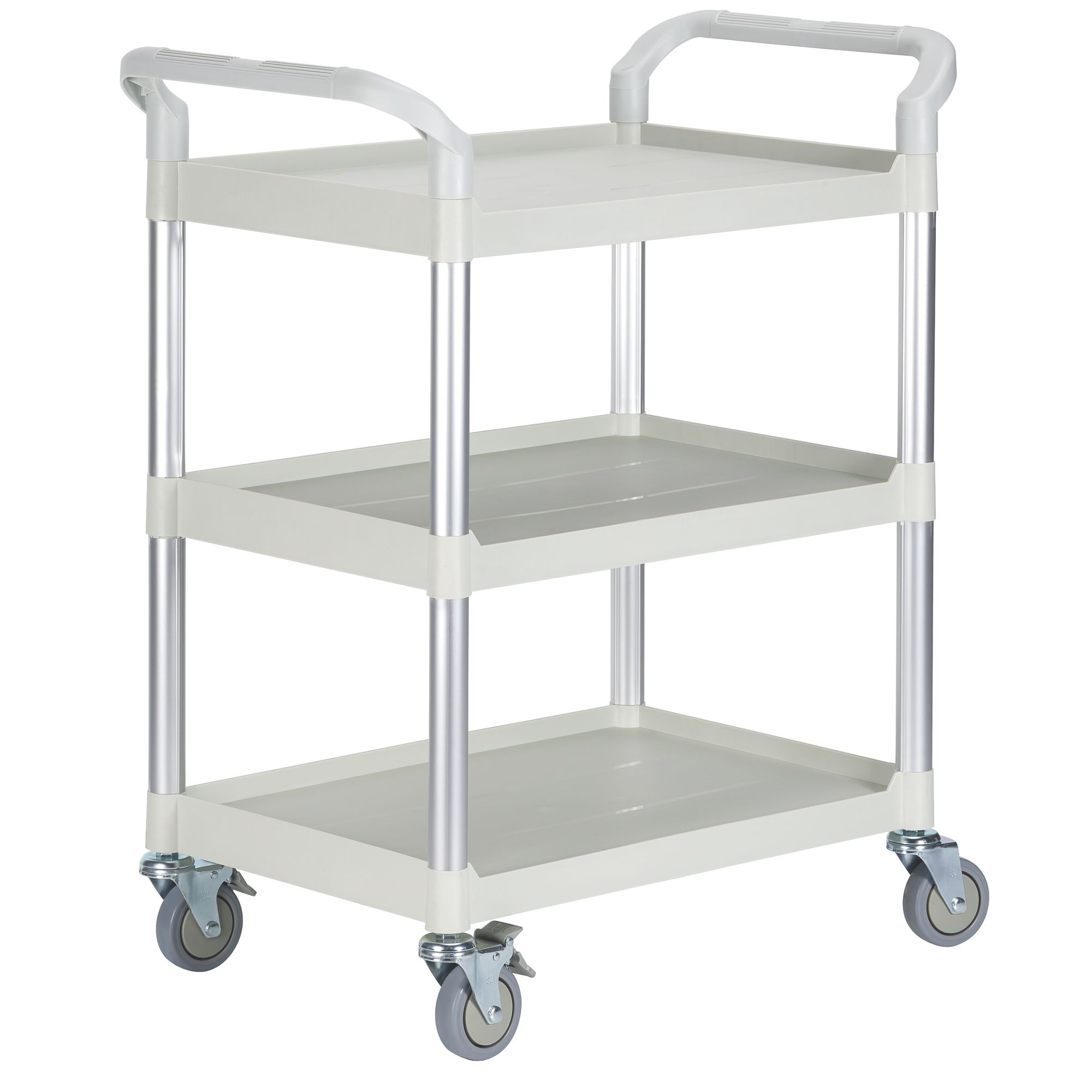 Description détailléeUltra pratique et robuste, ce chariot multi-usages est toujours prêt à rendre service. Dans un entrepôt, une cantine, ou un atelier... Grâce à ses 3 plateaux intégrés, ce modèle permet de transporter des marchandises ou des colis, en toute facilité. Gage de solidité : sa conception en polypropylène et en fibre de verre garantit une grande résistance à la corrosion et aux rayons UV. Ultra-résistant, ce pro du transport supporte des températures de -20°C à -145°C et peut accueillir une charge totale de 250 kg. Et pour multiplier les possibilités, ses 3 plateaux sont adaptés au contact alimentaire. Autre point fort : sa grande maniabilité ! Équipé de 4 roulettes pivotantes (2 roues avec freins) avec roulement à billes, ce chariot est très simple à déplacer. Et grâce à leur matière spécialement étudiée, ses roues non marquantes ne laissent pas de trace sur le sol. Dimensions des plateaux : L 68 x P 45 x H 95 cm. Poids : 13 kg. Ø roulettes: 10 cm.Vous apprécierez également son montage facile : grâce au maillet à embout en caoutchouc, quelques secondes suffisent.