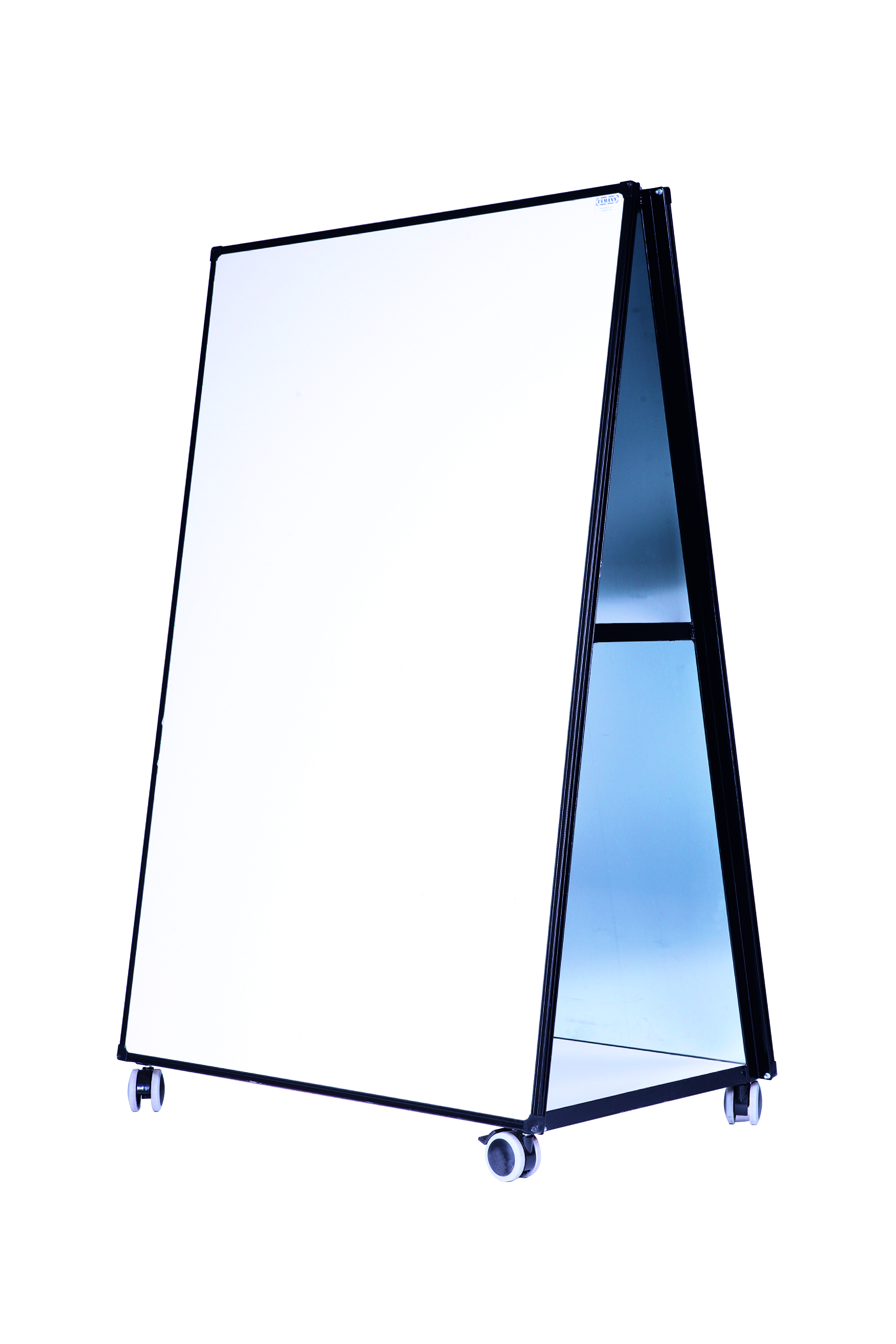 Chevalet mobile avec 2 surfaces d'écriture magnétiques en tôle émaillée blanche.