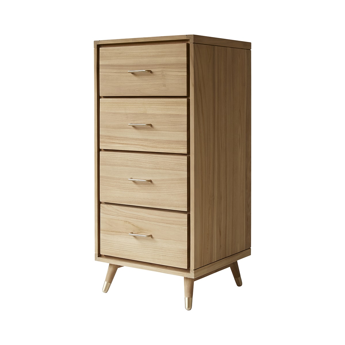 Découvrez cette commode Kort en bois de teck massif certifié FSC®. Elle est composée de 4 tiroirs (sur rails métal), solution idéale pour ranger votre linge de maison ou vos documents. Vous serez séduits par son design vintage inspiré du mobilier scandinave, caractérisé par ses pieds obliques en métal et bois. Son caractère original réside également dans son authenticité grâce à sa finition naturelle laissant apparaître la veine du bois, apportant une note de chaleur et d'authenticité dans votre pièce.