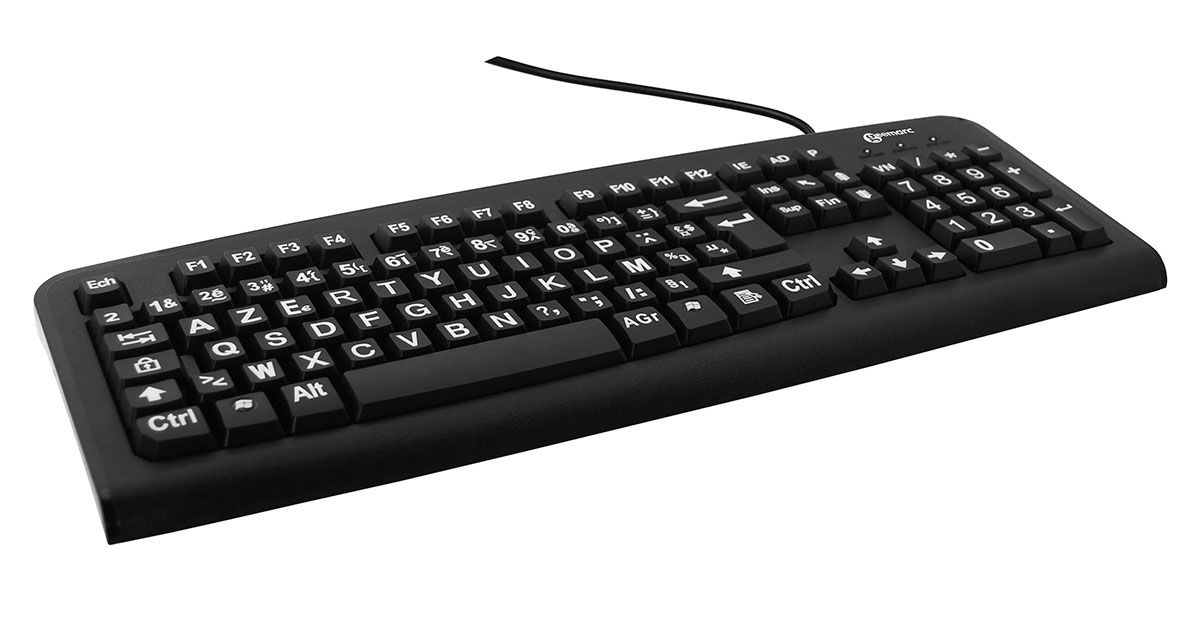 Le clavier Confort Visuel est un clavier d'ordinateur à grosses touches.Il est spécialement conçu pour les personnes malvoyantes ou les personnes ayant des difficultés à taper sur un clavier à petites et moyennes touches.Les caractères du clavier à grosses touches sont grossis, avec une hauteur de 1 cm pour chaque caractère.Les touches et les symboles sont facilement repérables. Caractéristiques du Clavier à grosses touches : Clavier 105 TouchesMise en ½uvre facile : Connecter et Utiliser (plug and play)Clavier Confortable d'utilisationConnexion USB2Touche à grand caractère (Hauteur des caractères : 1cm)Contraste élevéTouche à grand caractère, écriture blanche sur fond noir pour une bonne visibilitéCompatible Windows 7/10/Vista/XP/2003/200 45.5 x 17.1 x 2.2 cm