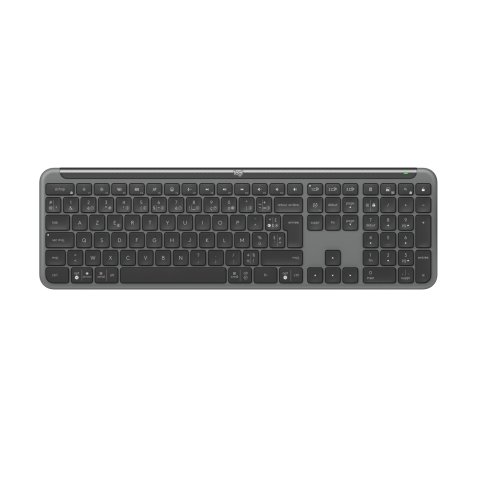 Logitech Signature Slim K950. Facteur de forme du clavier: Taille réelle (100 %). Style de clavier: Droit. Technologie de connectivité: Sans fil, Interface de l'appareil: RF sans fil + Bluetooth, Interrupteur à clé de clavier: Commutateur de touche « ciseaux », Disposition des touches du clavier: AZERTY, Utilisation recommandée: Bureau. Couleur du produit: Graphite