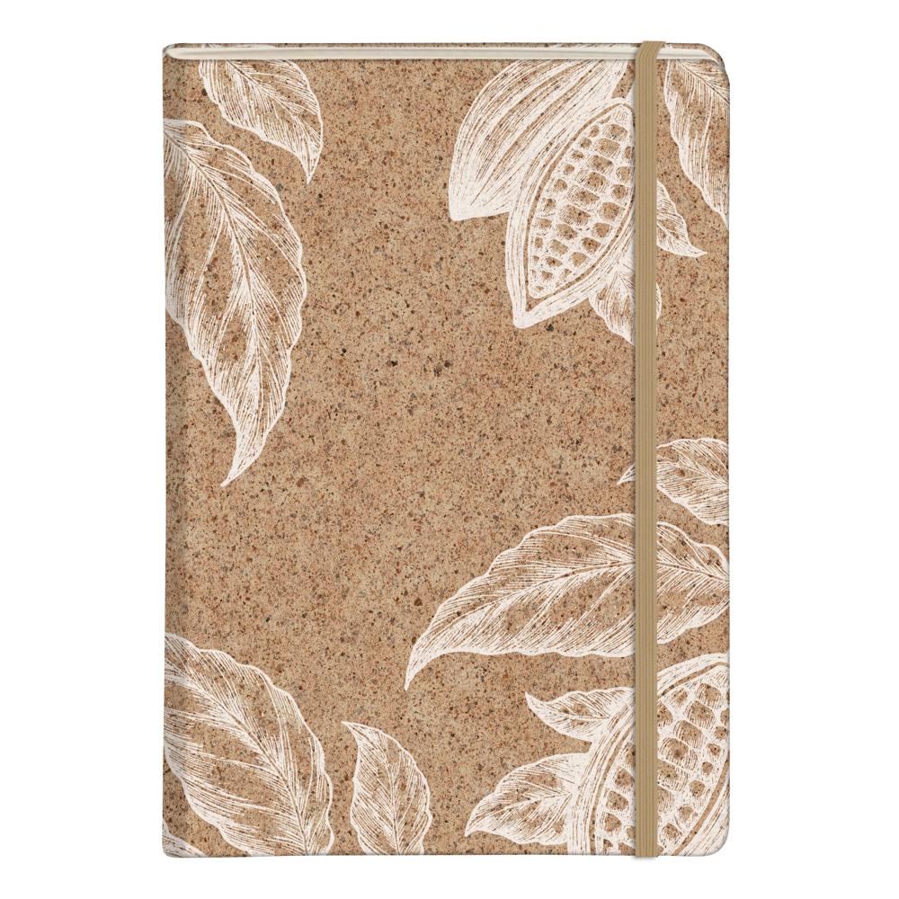 Le papier de cacao utilisé pour la fabrication de ce carnet est issu d'une démarche de développement durable et écologique. En effet, les coques et les fibres du cacaoyer sont transformées pour créer un papier naturel de haute qualité, aux finitions de surface uniques et à la couleur cacao originale. Les trois visuels assortis, représentant des motifs de coques de cacao, sont rehaussés d'une impression sérigraphie blanche pour une esthétique raffinée.