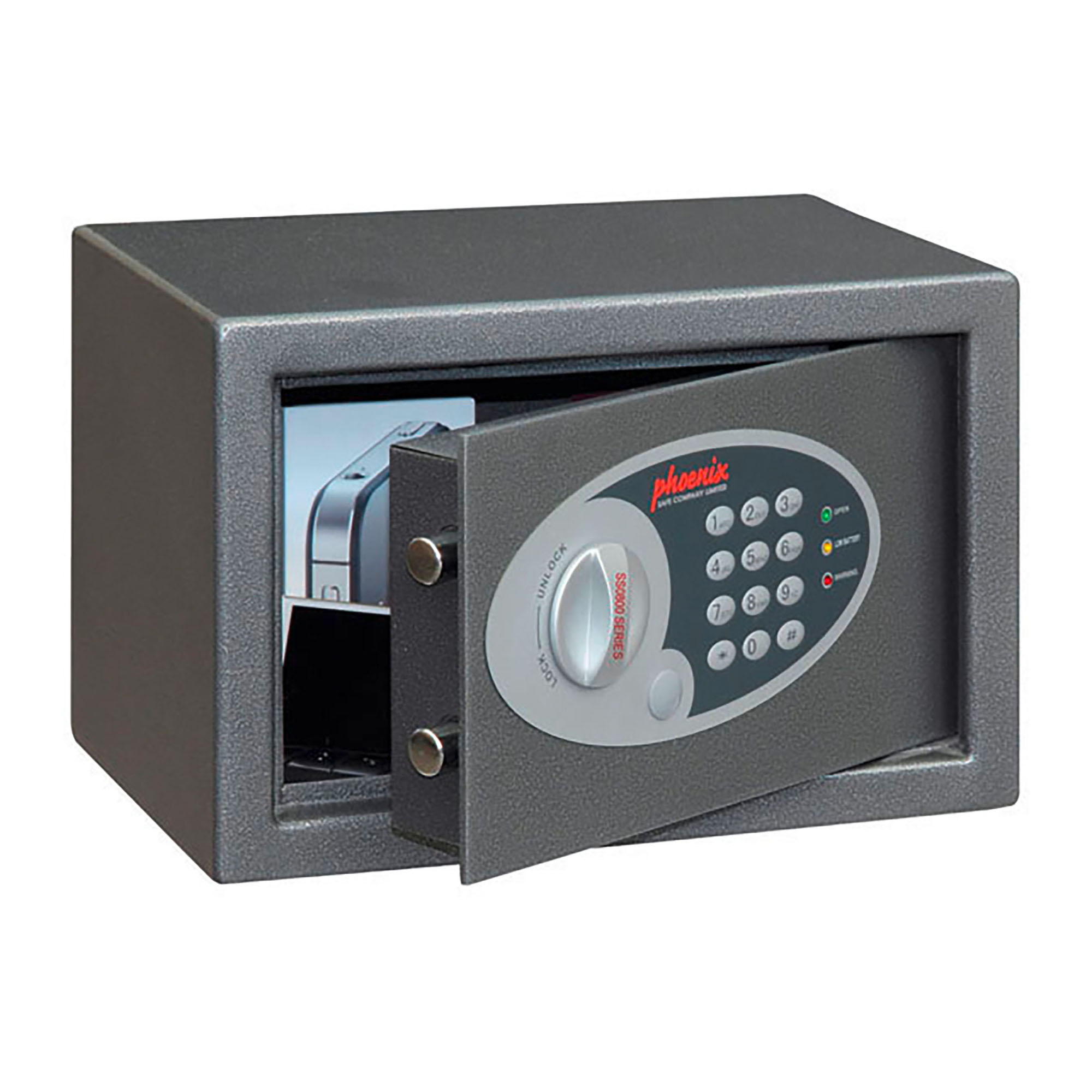 Description détailléePhoenix Vela Maison & Bureau SS0801E Taille 1 Coffre de sécurité avec serrure électroniqueRecommandé pour une valeur assurable de 1000 € d'argent liquide et 10 000 € d'objets de valeur.Le SS0800E est équipé d'une serrure électronique supérieure "facile d'utilisation" avec un système anti-corruption de haute sécurité. Pour une tranquillité d'esprit supplémentaire ces coffres sont équipés d'une serrure à clef de secours (2 clefs fournies).Les coffres Vela sont fournis avec 2 pênes de verrouillage et des charnières intérieures cachées pour une sécurité supplémentaire.Prêt pour une fixation au mur ou au sol, avec boulonneries fournies pour murs en brique ou sols en ciment.Finition par une peinture de haute qualité anti rayure de couleur graphite métallisée.Équipé d'une lumière intérieur à LED lumineuse de sorte que le contenu peut être facilement vu, même dans les armoires les plus faiblement éclairées.Dimensions externes (L)310 x (P)200 x (H)200 mmDimensions internes (L)305 x (P)180 x (H)195 mm