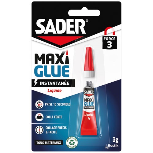 La colle liquide Maxi Glue tous matériaux vous offre une qualité de collage propre et précise grâce à sa technologie avancée. Extra forte, cette glue colle rapidement, est facile d'utilisation et est résistante. Au quotidien, elle vous permettra de coller de la porcelaine, du verre, de la céramique, du cuir, du plastique, du caoutchouc, du bois, du métal...