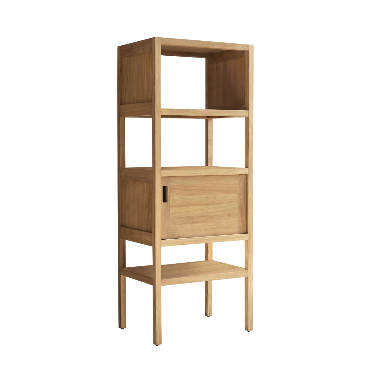La colonne de salle de bain Arty, un meuble de rangement en teck massif FSC® de la marque Tikamoon ! Astucieuse, cette petite étagère est composée de multiples solutions de rangement. Teinte naturelle, forme simple. Elle est parfaite pour une salle de bain sobre à l'esprit naturel ou plus graphique.