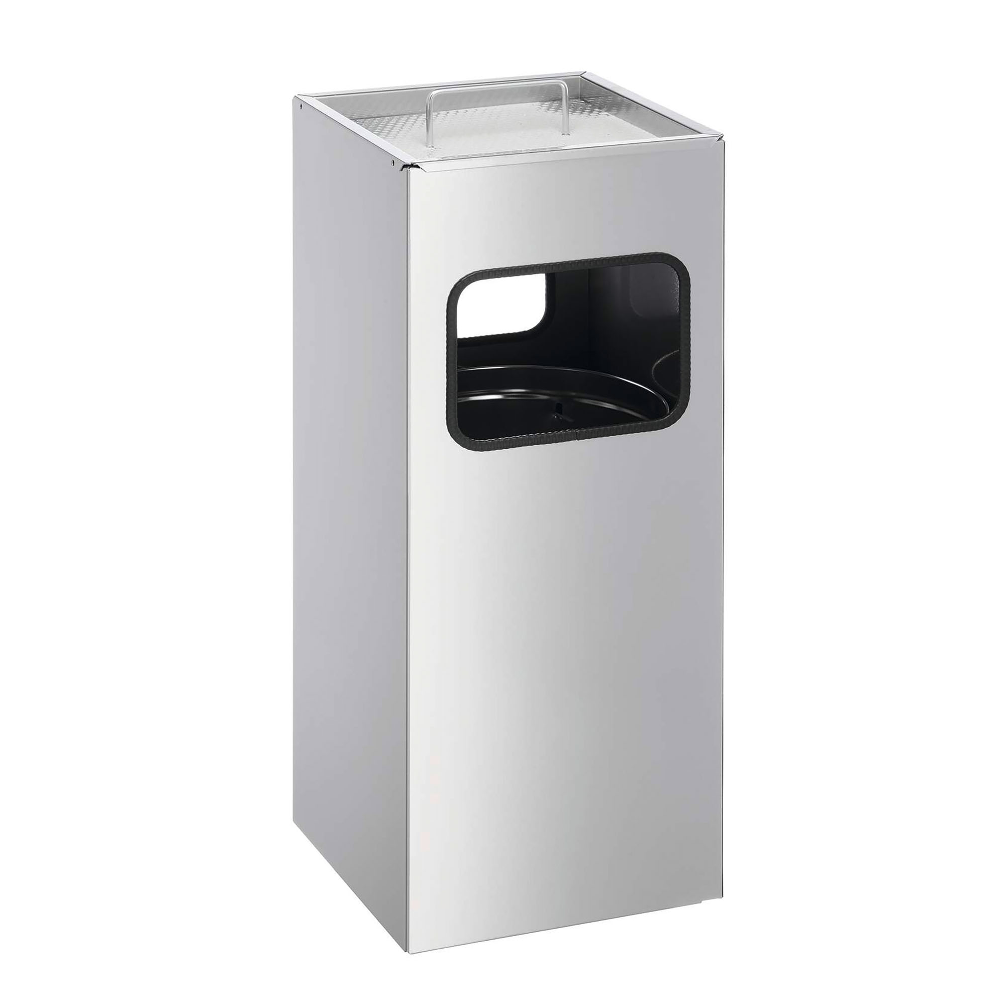Fonctionnelle, cette corbeille à papier carrée est équipée d'un cendrier de 2 litres.Elle possède deux ouvertures latérales pour faciliter une vidange aisée.Bacs amovibles pour un retrait et un nettoyage facile. Adaptée à une utilisation en intérieur ou en extérieur sous abri.Inclus dans le produit également une grille perforée et un sac de sable de 1,5 kg. CaractéristiquesCapacité : 17 litres pour la corbeille et 2 litres pour le cendrierColoris : Noir ou Argent métalliséMatériau : MétalZone d'utilisation : Intérieur et Extérieur sous abriDimensions (H x Ø) : 620 x 250 mmLivré avec sac de sable et grille perforéeRetrouvez les recharges de sable en cliquant ici.