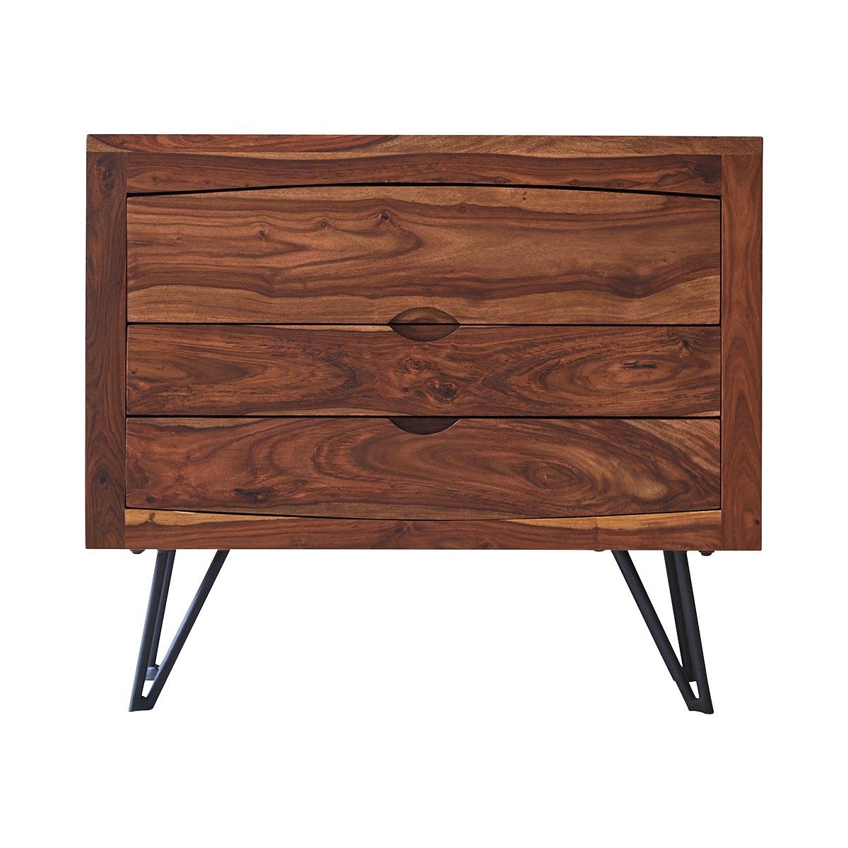 Découvrez notre commode Bonnie en sheesham de la marque Tikamoon ! Véritable meuble de rangement, la commode est équipé de 3 tiroirs. Son élégance réside dans ses lignes sobres et son aspect chamarré, son style contemporain apportera une touche de modernité dans votre intérieur. Sa teinte procurera à votre chambre une touche authentique et chaleureuse. Le sheesham est un bois massif au dessin chamarré, appelé également palissandre des Indes ces éventuelles irrégularités sont gage de son authenticité.