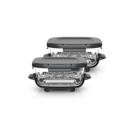 Description détaillée2 Contenants en verre - 1,4 L, Récipient de cuisson en verre, Haute résistance thermique - Utilisation sans dommage, Inclus : Support de protection
