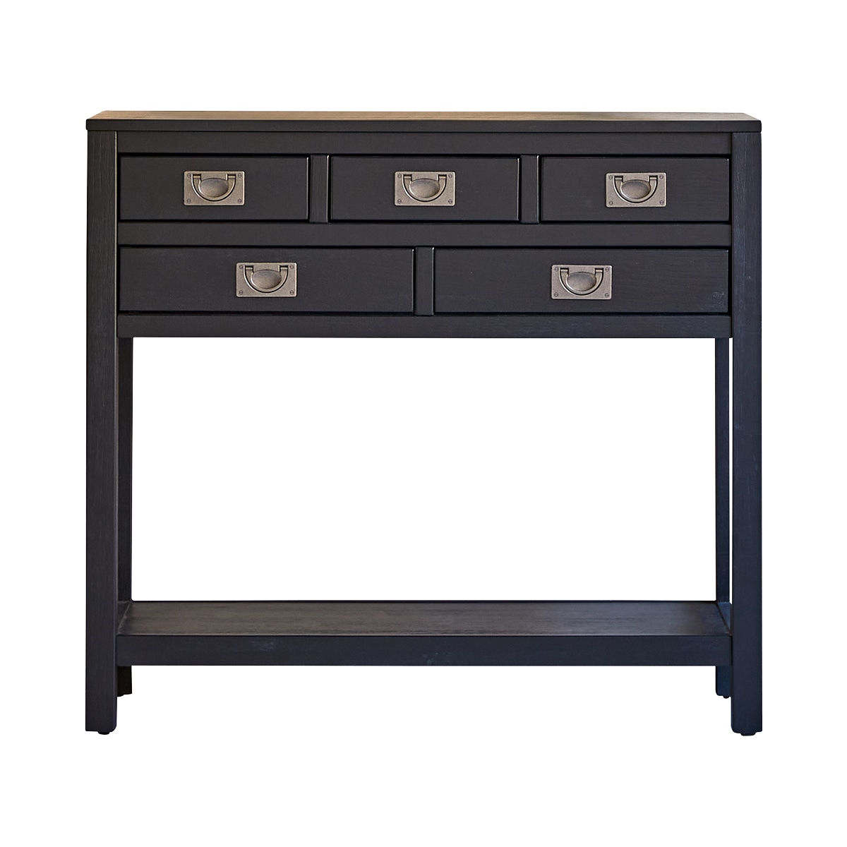 Composition : Console en pin massif, poignées de tiroirs en laiton.