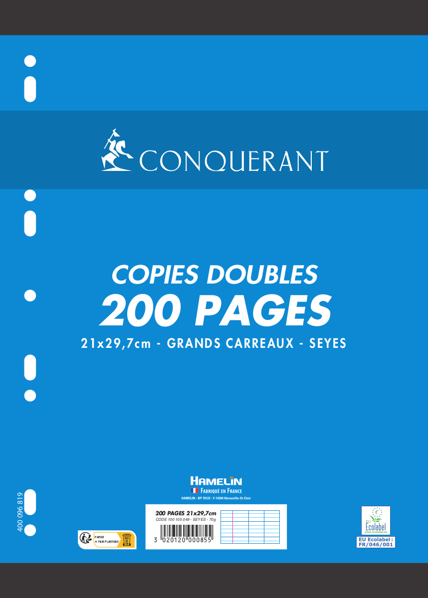 Copies doubles 200 pages seyès 21 x 29,7 cm Conquérant - perforées
