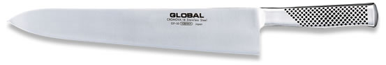 Couteau du Chef Série GF (modèles GF33, GF34 et GF35). Manche rond creux assurant équilibre et prise en main optimum. Lame forgée trempée apportant une résistance supérieure.