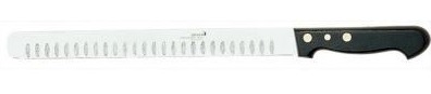 Doté d'une lame en acier inoxydable de 28 cm de longueur, ce couteau à jambon vous permet de réaliser des tranches fines et régulières avec un contrôle optimal. Les olives présentes sur la lame assurent une découpe nette et précise, tandis que le manche en ABS noir avec rivets offre une prise en main confortable et sécurisée.