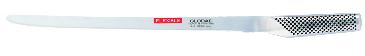 Ce modèle G10 de la Série G se distingue par sa grande lame flexible unie, spécialement conçue pour découper le jambon ou le saumon avec précision et efficacité. La gamme de couteaux GLOBAL est large et variée, répondant ainsi aux différentes exigences de chaque utilisateur.