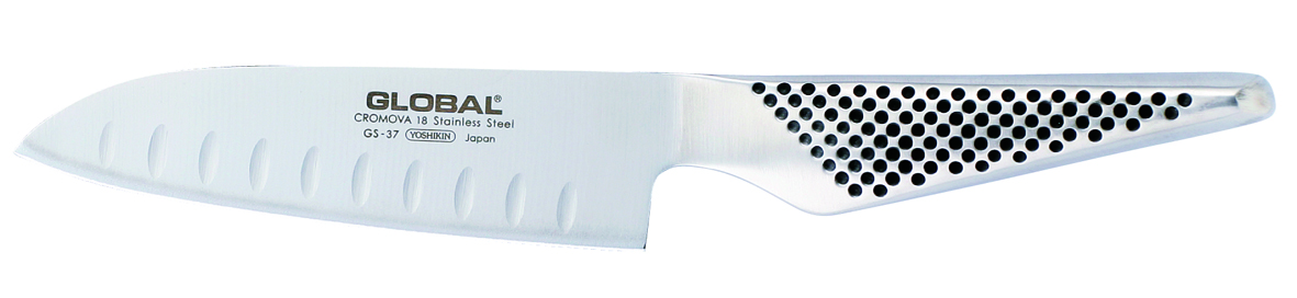 Faites l'expérience du Couteau ""Santoku"" Global Série GS 13 cm et découvrez la qualité et la précision qui font la renommée des couteaux ""Global"" dans le monde de la gastronomie.