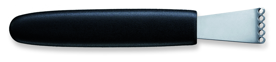 Le manche en plastique noir non seulement ajoute une touche d'élégance à cet outil, mais assure également une prise en main confortable et sûre. Conçu spécifiquement pour les droitiers, ce couteau zesteur s'adapte parfaitement à la main de l'utilisateur, permettant ainsi une utilisation plus ergonomique et moins fatigante.