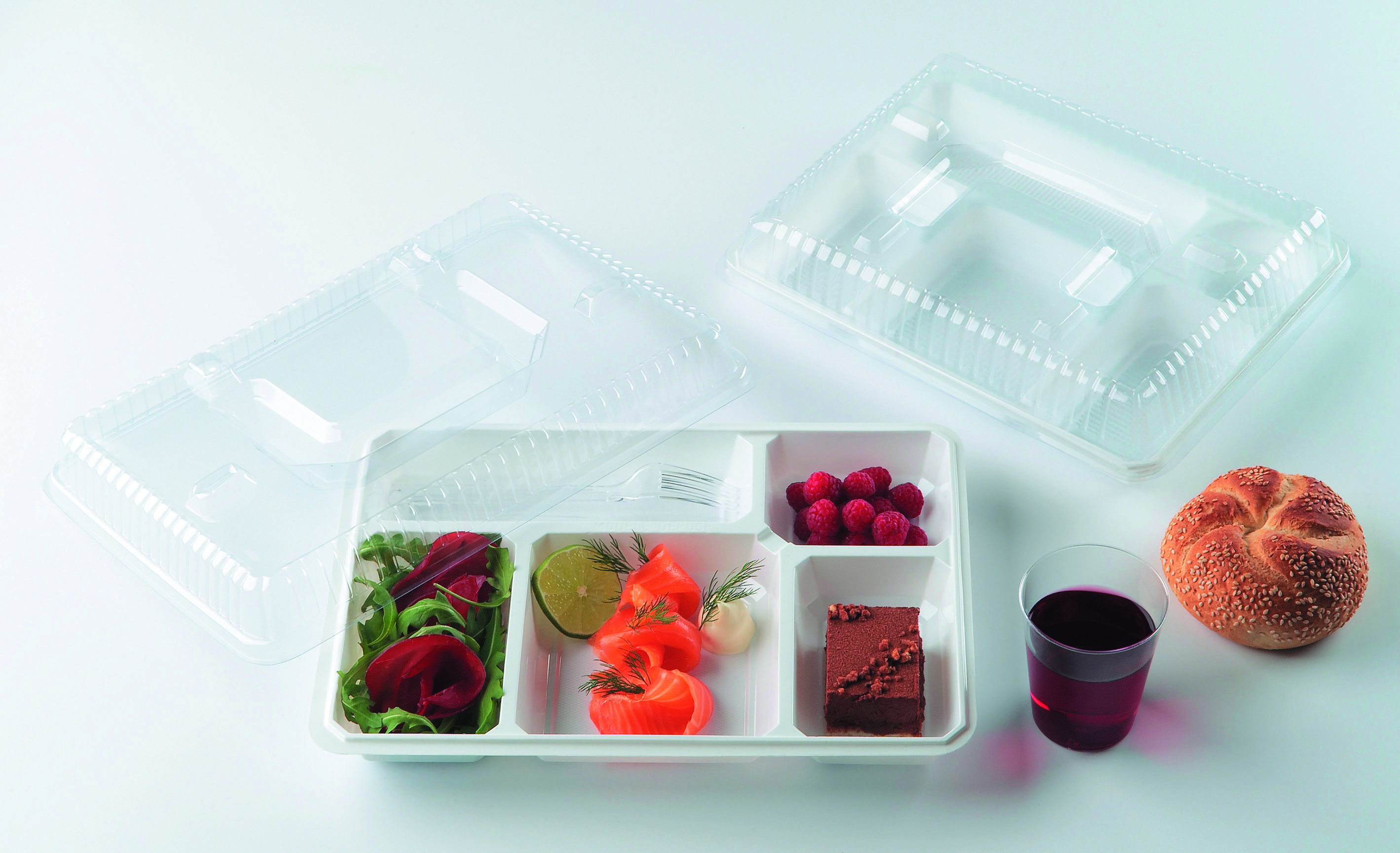 Optez pour le couvercle pour plateau 5 compartiments 28,5 x 22,5 x 3 cm - Lot de 200, un accessoire indispensable pour assurer la protection et la conservation de vos repas au bureau. Ce lot de couvercles, conçu en polystyrène de qualité, est idéal pour couvrir et préserver la fraîcheur de vos aliments dans un plateau à 5 compartiments. Fabriqué en France, ce produit garantit un respect des normes de qualité et de sécurité alimentaire.