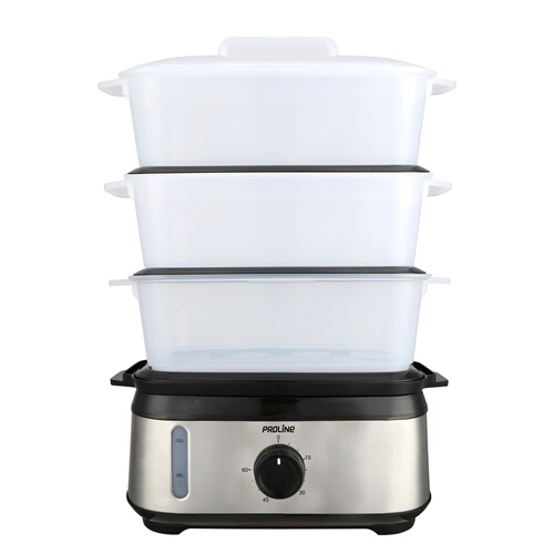 Description détaillée3 paniers vapeur, Puissance : 950 W, Capacité totale : 9 L, Supports à œufs dans les paniers vapeur et panier à riz inclus