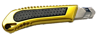 Description détailléeCutter à lame sécable avec boîtier en aluminium moulé sous pression, avance de lame crantée avec arrêt automatique, guide-lame solide en métal, incl. lame noire