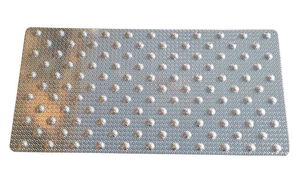 Dalle podotactile en aluminium grain de riz. Pour avertir les personnes mal ou non voyantes d'un risque majeur, utilisez ces dalles podotactiles.Elles doivent être positionnées 50 cm avant l'obstacle : traversée de rue, quai ferroviaire, parking, escalier...Caractéristiques : Dimensions : 420 x 825 mmMatériau : AluminiumÉpaisseur : Semelle : 2 mmPlots : 5 mmCoins arrondis Non percéeUtilisation : extérieurCe que dit la loiArrêté du 1er août 2006 - article 7.1 "En haut d'un escalier, un revêtement de sol doit permettre l'éveil de la vigilance à une distance de 0.50 m de la première marche grâce à un contraste visuel et tactile." La date de mise en conformité obligatoire est le 1er janvier 2015.Décret 2006-1657 du 21 décembre 2006L'implantation des bandes podotactiles est rendue obligatoire aux abaissés de trottoir des passages piétons lors de travaux sur voirie.