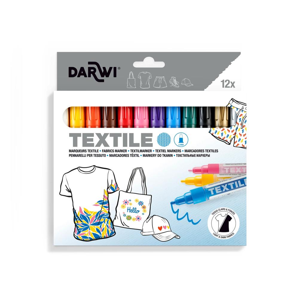 DARWI 12 Marqueurs Peinture Textile Opaque Pointe Conique Fine 2mm - Assortis