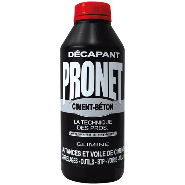Aspect liquide incolore. Odeur : nauséabonde. pH=1. S'emploie pur ou dilué jusqu'à 50%. Consommation : 1L = 6 à 12m² selon la dilution et le support. Élimine le voile et les traces de ciment sur carrelages, les traces de laitances, résidus de plâtre, remontées calcaires, mortier. Utilisation intérieure et extérieure. Convient au nettoyage du matériel et des outils (bétonnière,...)
