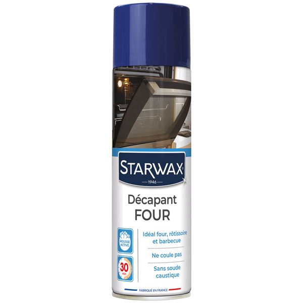 Le décapant four et accessoires en aérosol de 500 mL de la marque STARWAX dégraisse sans effort votre four, rôtissoire, barbecue et grill. Agit en 30 minutes pour nettoyer les graisses même recuites. S'utilise sur surfaces froides ou tièdes. Ne coule pas. Fabriqué en France.