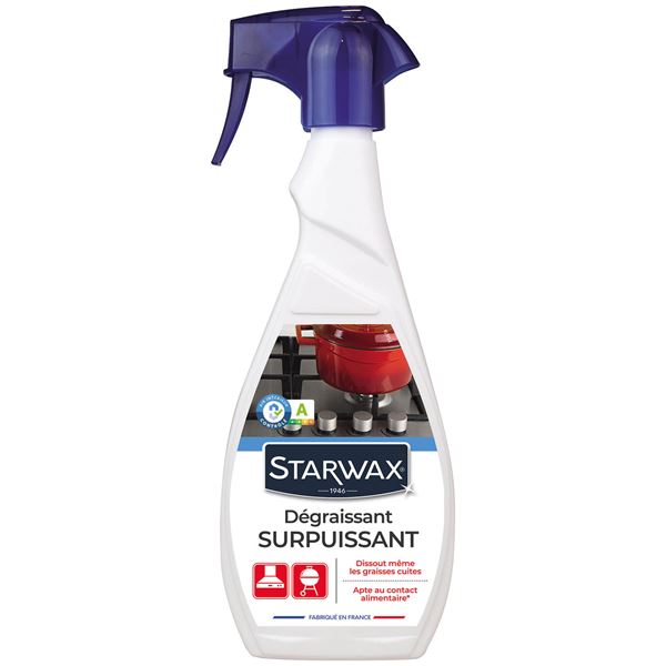 Le dégraissant spécial cuisine en pulvérisateur de 500 ml de la marque STARWAX est idéal pour des surfaces toujours propres et entretenues ! Elimine les graisses cuites et adhérentes sur hottes, friteuses, plan de travail, accessoires de barbecue. Odeur citronnée.