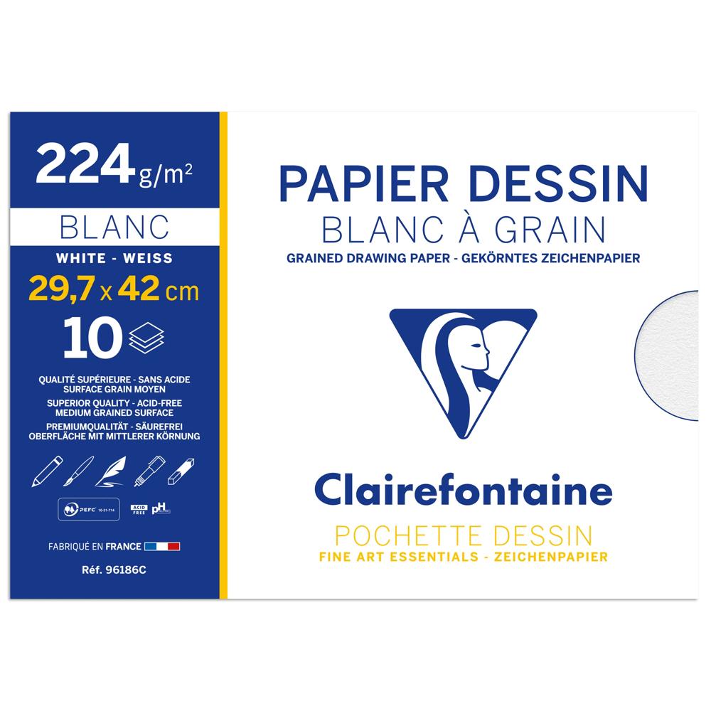Explorez le potentiel artistique du Dessin à Grain pochette 10F A3 224g de la marque renommée Clairefontaine. Ce papier haut de gamme, fabriqué en France, est caractérisé par sa blancheur naturelle et sa qualité supérieure, idéal pour les professionnels et les amateurs d'art.