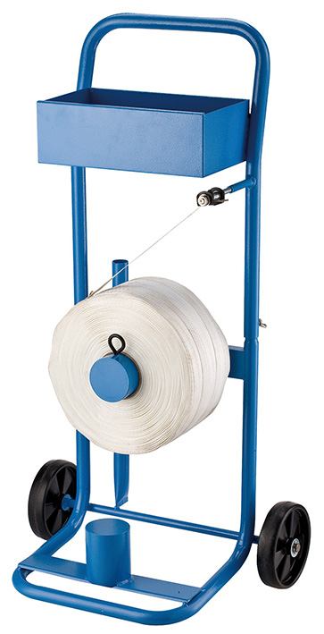 Dévidoir mobile pour feuillard textile. Optimisez la manipulation de vos feuillards textiles avec le dévidoir spécialement conçu pour faciliter vos opérations. Doté d'une conception mobile et pratique grâce à ses roues en plastique, ce dévidoir est parfait pour un environnement industriel ou de manutention. Capable de supporter un feuillard textile jusqu'à 40 mm de large, il assure une utilisation fluide et efficace.