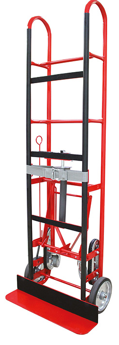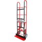 Ce diable en acier est conçu spécifiquement pour faciliter la manutention de charges lourdes et encombrantes. Sa conception ergonomique comprend un tablier de grandes dimensions et des poignées cintrées qui offrent une prise en main optimisée. Pour assurer la sécurité et la praticité, il est équipé d'une sangle de maintien avec tendeur et d'une béquille escamotable avec roulettes pivotantes. La protection du tablier avec une bande en caoutchouc assure la sécurité des charges fragiles. Le système de chenilles en caoutchouc permet de franchir aisément les marches d'escalier, tandis que les roues de 200 mm en caoutchouc avec jantes en fonte d'aluminium garantissent une robustesse et une stabilité optimales.Diable Acier pour Manutention de Charges Lourdes et Encombrantes