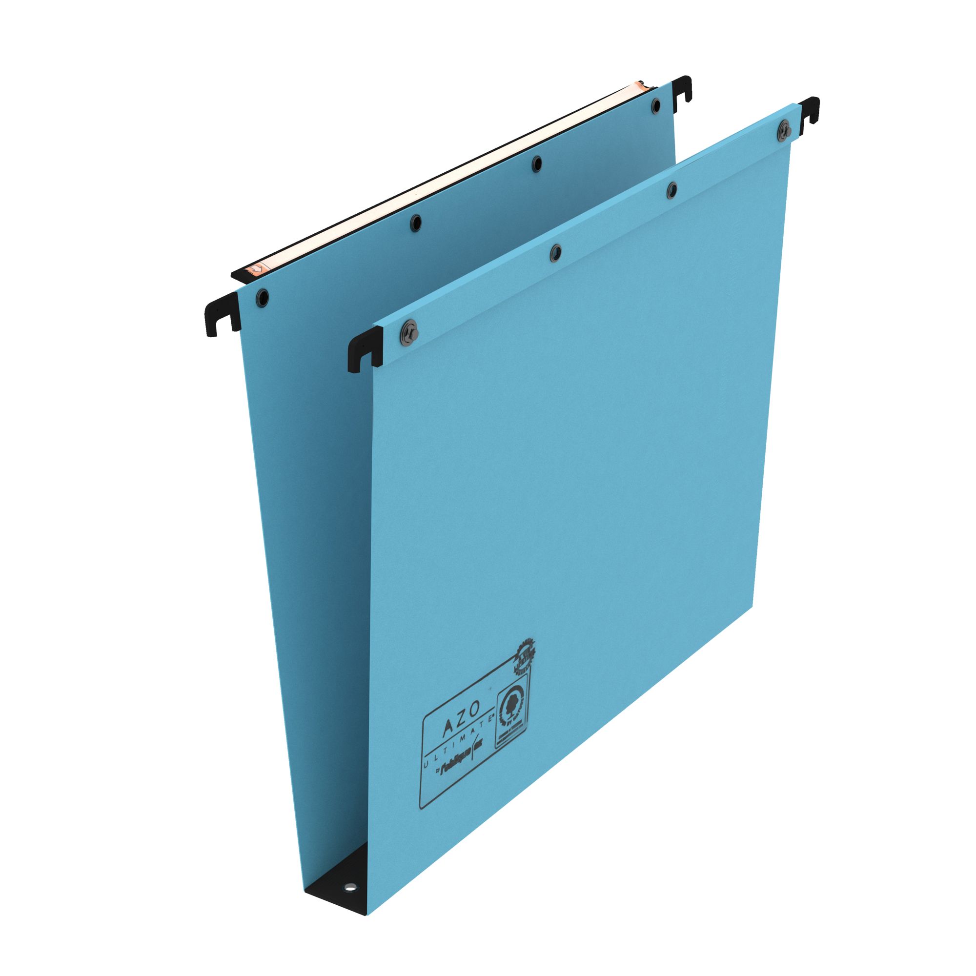 Pour tiroirs. Tringle de suspension en acier indéformable, spécial dossiers lourds. Embouts plastique surmoulés indissociables. Fixation par rivets métal anti-déchirure. Système de mise en continu par bouton pression. Carte orange 240 g renforcée, ultra-résistante.