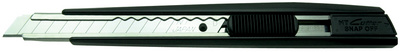 Description détailléeCutter en plastique recyclé avec guide-lame en métal, lame 9 mm, mécanisme d'avance à cran, clip et casse-lame, avec 3 lames de rechange, lames adaptées: BA 160 et BA 170