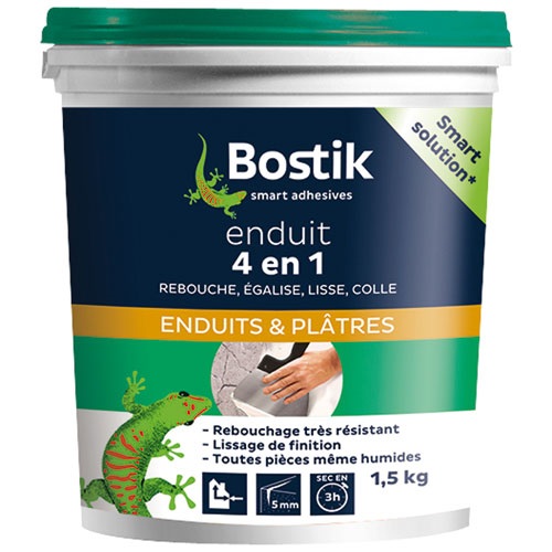 Autres produits populaires dans ce rayonEnduit de rebouchage intérieur/extérieur Rapid' Rebouch Toupret, gris - Seau de 700 ml34,50 € htEnduit rebouchage lissage pâte extérieur 1.5kg + spatule23,50 € htEnduit rebouchage façade pot 1.5kg27,95 € htEnduit 4 en 1 multi-usages Bostik - Seau de 4 kg53,50 € htEnduit répare bois intérieur extérieur poudre 1 kg37,50 € htEnduit rebouchage façade en poudre 1kg20,50 € ht