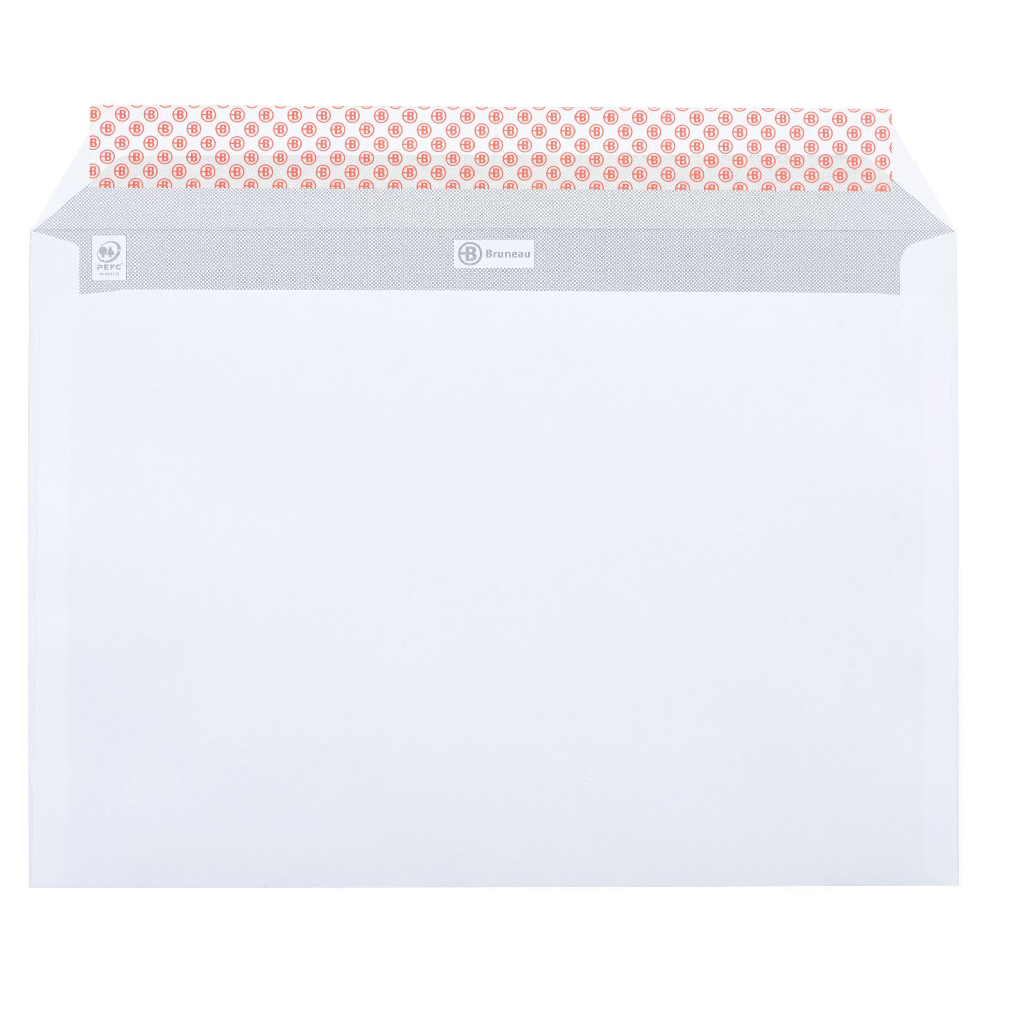 Pour des envois de type postal C4, l’enveloppe avec fenêtre de Bruneau est ce qu’il vous faut. Muni d’une grande ouverture sur le côté, il vous sera facile d’y insérer un document A4 sans le plier. Bruneau a prévu une patte autocollante avec bande protectrice pour sa fermeture. Opaque et avec un fond uni, il est impossible de voir son contenu de l’extérieur. Toutefois, une fenêtre de 45 x 100 mm offre une vue optimale sur l’adresse du destinataire.