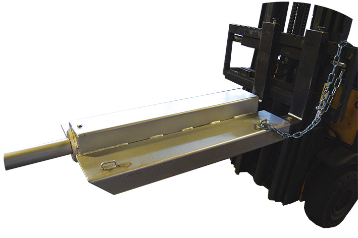 Optimisez le transport de vos charges cylindriques avec cet éperon enfourchable conçu pour être monté facilement sur les fourches de votre chariot élévateur. Idéal pour le transport de rouleaux de moquette, dans le domaine de l'imprimerie ou pour des tuyaux, cet accessoire professionnel assure un maintien et une sécurité accrus grâce à sa construction robuste en acier et sa finition galvanisée à froid. Livré avec une chaîne de sécurité, il garantit une utilisation en toute confiance.