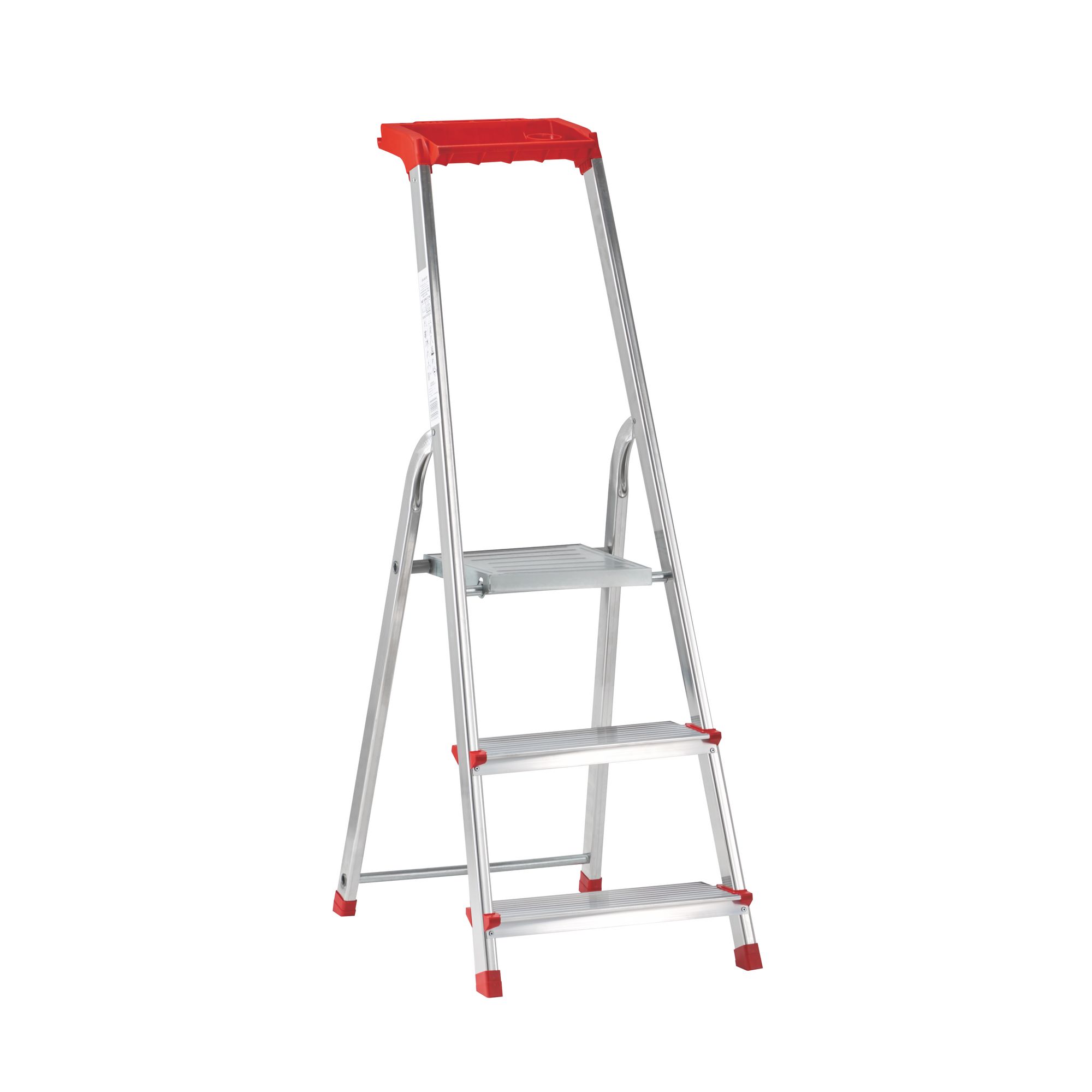 Description détailléeTravaux en hauteur ? Endroits difficiles d'accès ? Pratique et robuste, l'escabeau Escalux est la solution toute trouvée. Avec ses 3 marches antidérapantes, ce modèle permet d'atteindre votre objectif en toute sécurité ! Grâce à ses embouts interchangeables, il garantit une parfaite stabilité. Et pour encore plus de fiabilité : sa plateforme en acier est aussi dotée d'un système anti-basculement. Pour rester libre de vos mouvements, cet escabeau comprend aussi une tablette porte-outils multifonctions pour déposer tout votre équipement. Gage de solidité : sa structure en aluminium hautement résistante permet de supporter des charges jusqu'à 150 kg. Autre point fort : cet escabeau est aussi très simple à utiliser. Son articulation est assurée par des crosses monoblocs. Dimensions : H 126 x L 43 cm. Profondeur marche : 120 mm. Poids : 3,6 kg