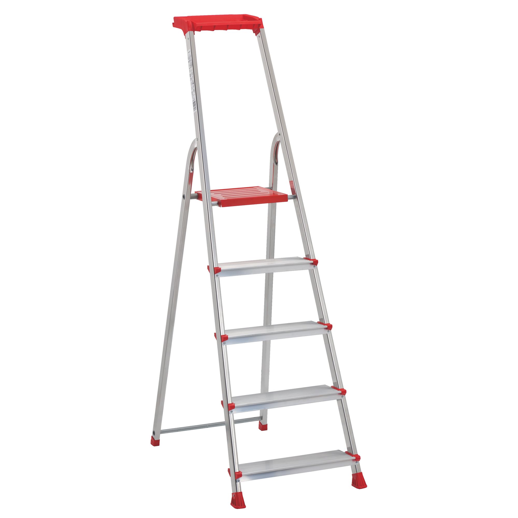 Description détailléeTravaux en hauteur ? Endroits difficiles d'accès ? Pratique et robuste, l'escabeau Escalux est la solution toute trouvée. Avec ses 5 marches antidérapantes, ce modèle permet d'atteindre votre objectif en toute sécurité ! Grâce à ses embouts interchangeables, il garantit une parfaite stabilité. Et pour encore plus de fiabilité : sa plateforme en acier est aussi dotée d'un système anti-basculement. Pour rester libre de vos mouvements, cet escabeau comprend aussi une tablette porte-outils multifonctions pour déposer tout votre équipement. Gage de solidité : sa structure en aluminium hautement résistante permet de supporter des charges jusqu'à 150 kg.Autre point fort : cet escabeau est aussi très simple à utiliser. Son articulation est assurée par des crosses monoblocs. Dimensions : H 172 x L 48 cm. Profondeur marche : 120 mm.Poids : 4,6 kg.