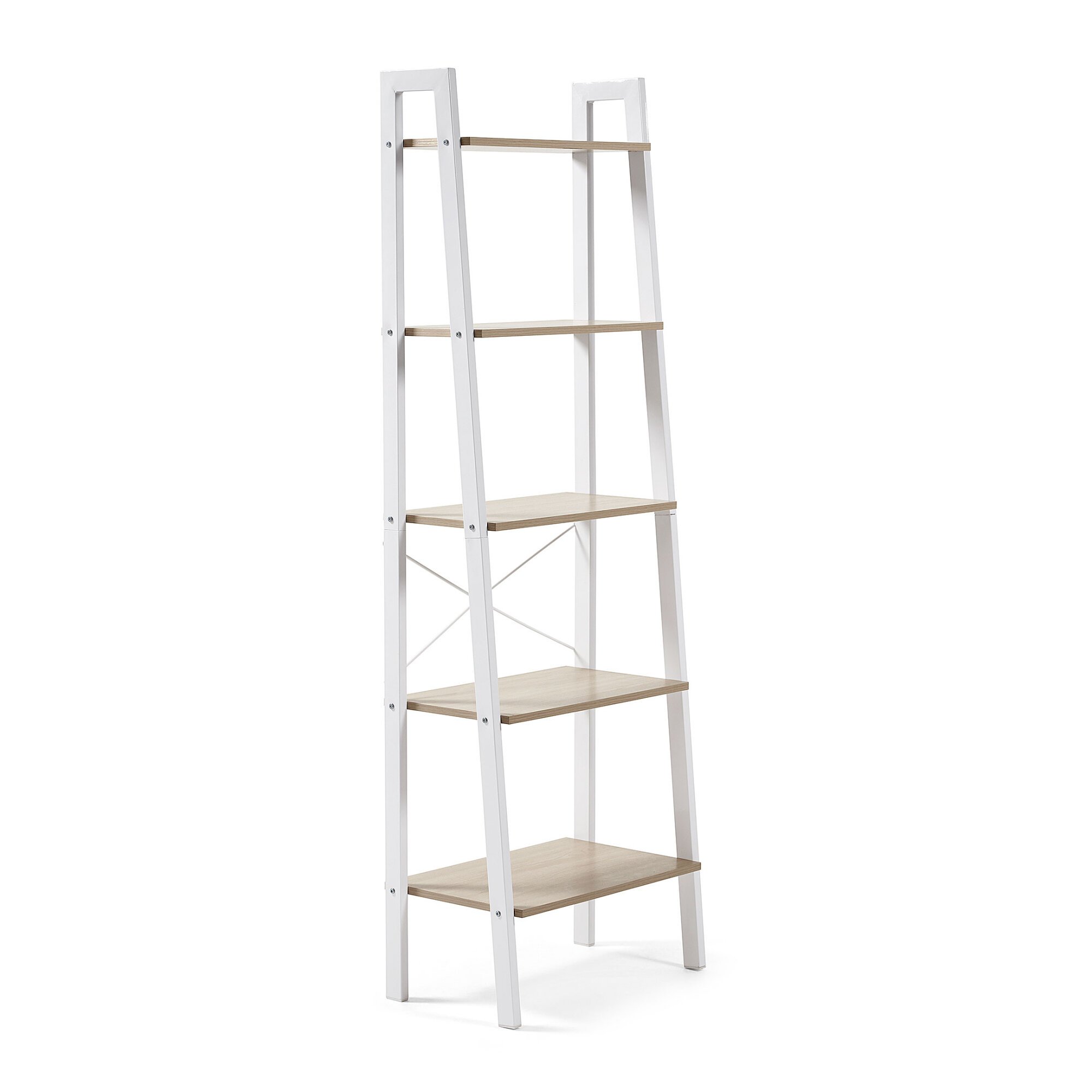 L'étagère Aarhus a été conçue avec une structure en métal et de cinq tablettes effet bois naturel. Ce sera la pièce idéale qui complétera votre espace de travail, à côté du bureau Aarhus. Le design vous rend unique.