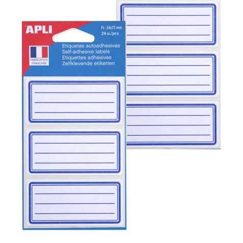 Vous visitez actuellement le page Etiquette adhésive scolaire 34 x 75 mm Apli à cadre et lignes bleus - Pochette de 24 du rayon Étiquettes scolaires