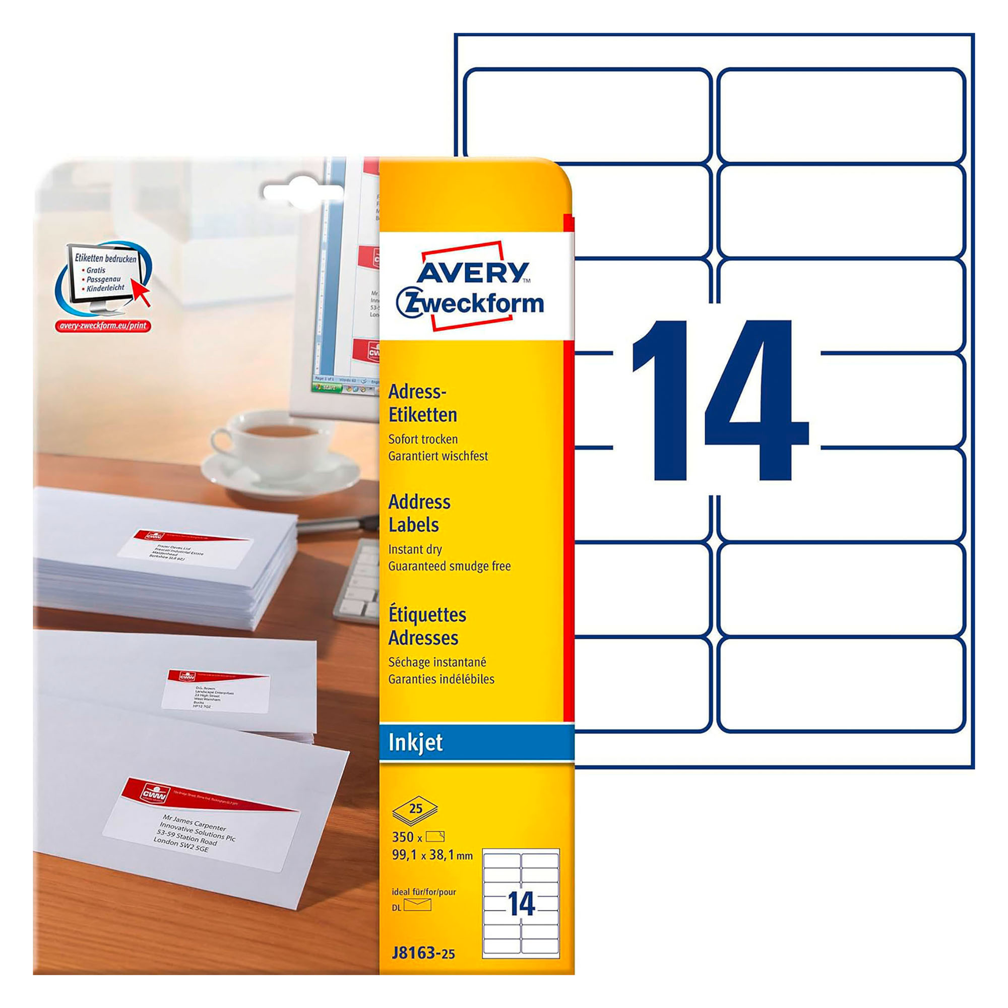 Compatibles avec les imprimantes jet d'encre, ces étiquettes se démarquent par leur qualité et leur fiabilité. Grâce à leur format standard de 99,1 x 38,1 mm, elles s'adaptent à tous vos besoins d'expédition.
