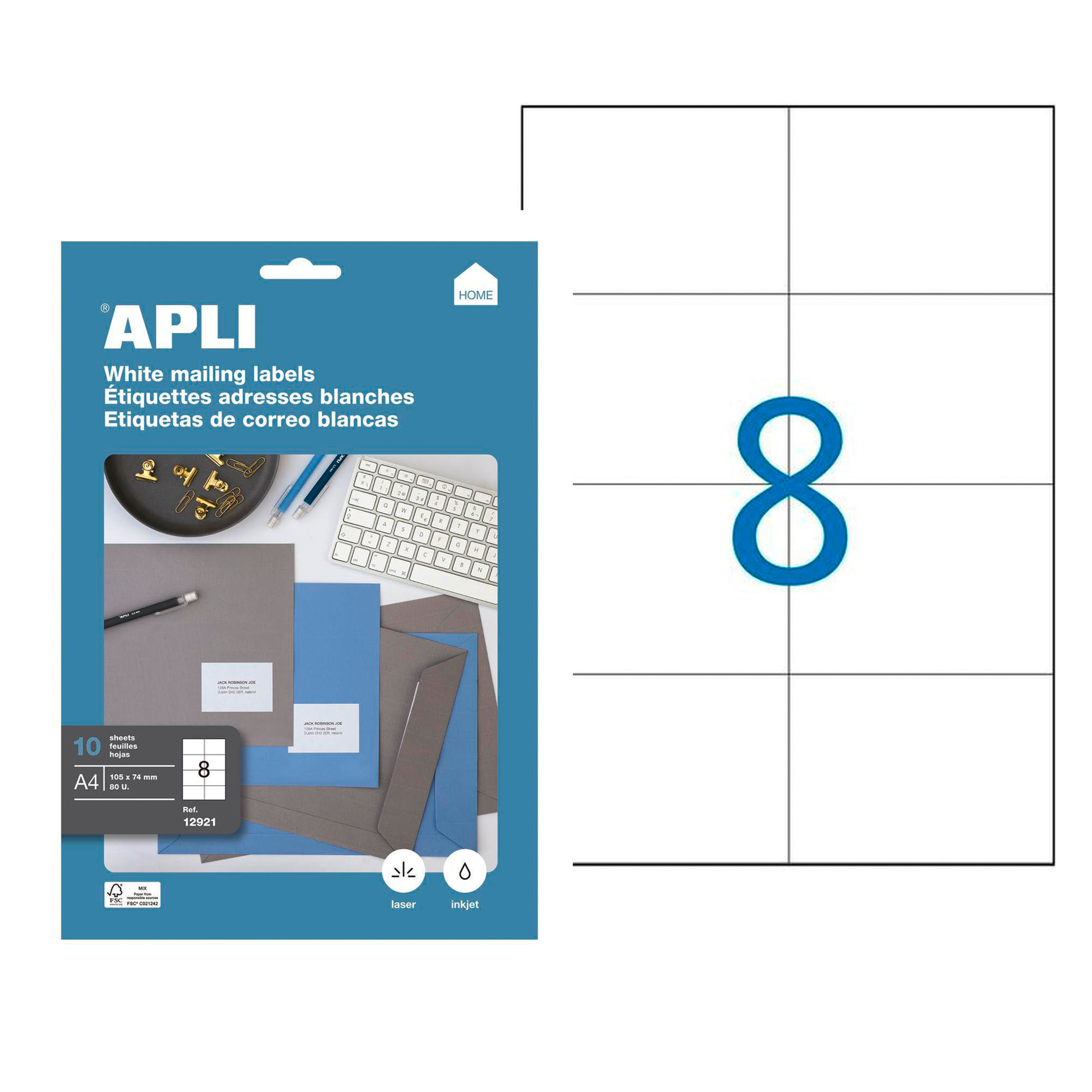 8 étiquettes par feuille. 10 feuilles A4.