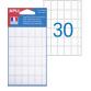 Pochette de 210 étiquettes blanches multi-usages aux coins arrondis et à adhésif permanent. La pochette contient 7 planches de 30 étiquettes de format 12 x 18 mm.