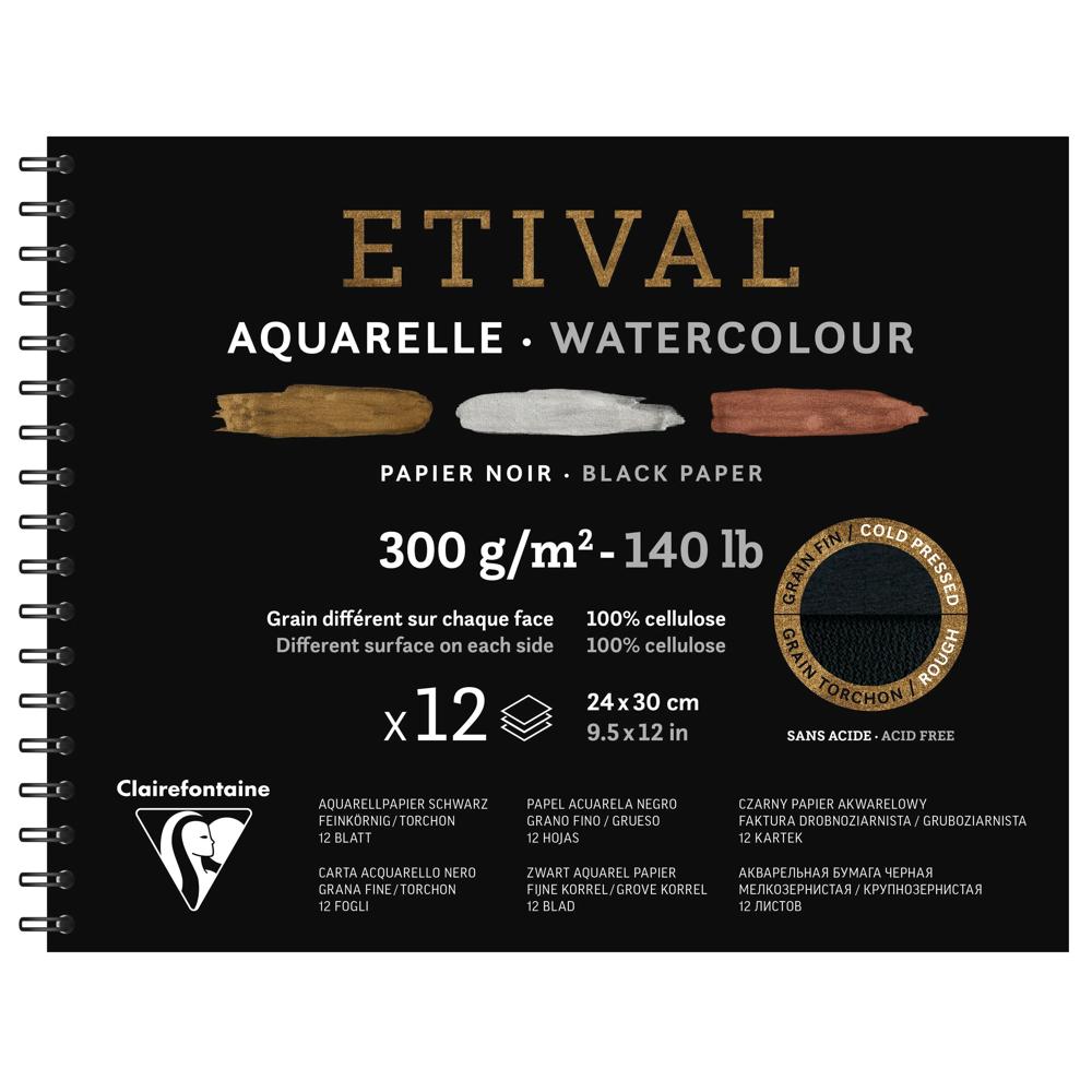 Explorez toutes les possibilités créatives offertes par l'Etival Noir album spiralé 12F 24x30cm 300g double grain de Clairefontaine. Cet album de qualité étude est conçu en papier aquarelle Etival 100% cellulose, garantissant une excellente conservation et une bonne capacité d'absorption. Sa teinte noire profonde apporte une touche d'élégance et de sophistication à vos œuvres.
