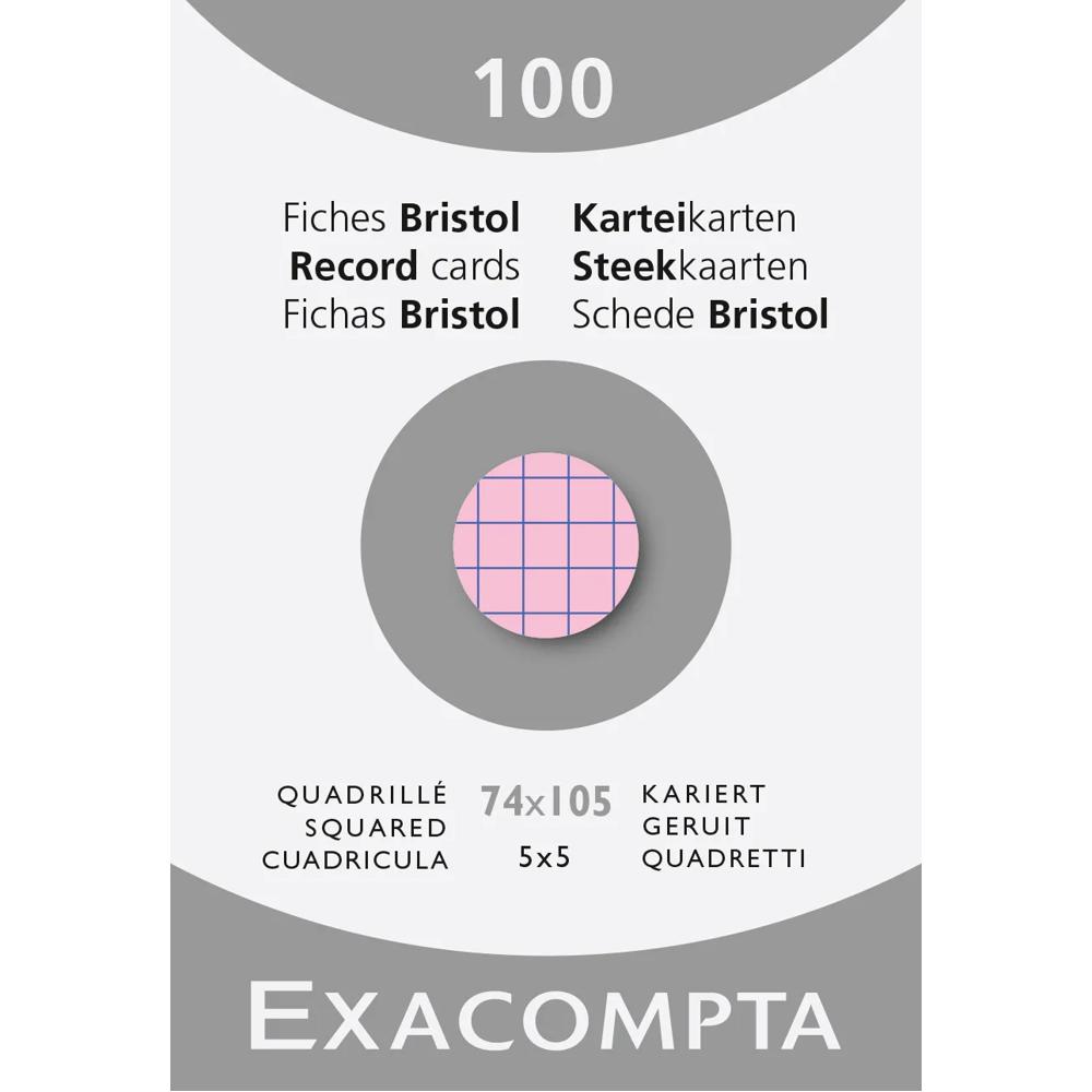 Étui de 100 fiches - bristol quadrillé 5x5 non perforé 74x105mm - Rose