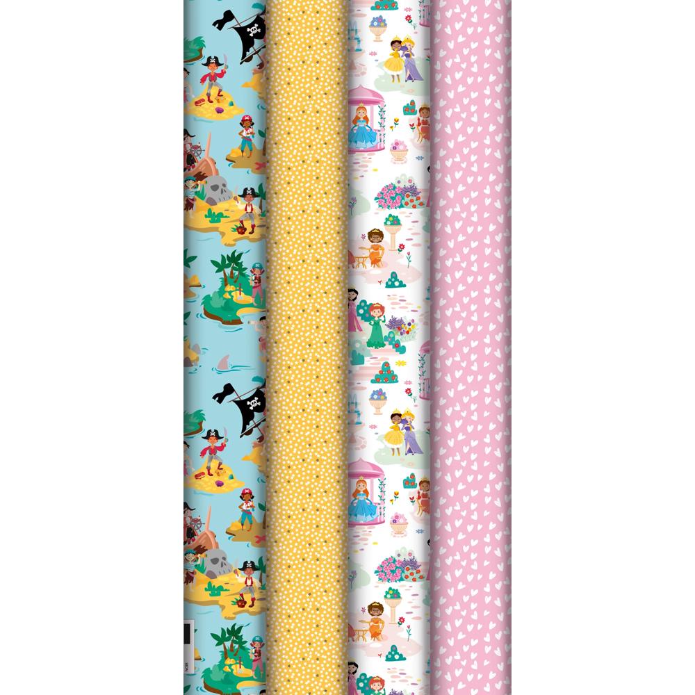 MOTIFS : Des rouleaux de papier cadeau aux motifs : Pirates, princesss, coeurs, étoiles. Rouleaux assortis pour emballer vos plus belles attentions. Si vous avez plusieurs cadeaux à faire, c'est l'idéal pour les assortir de façon originale.