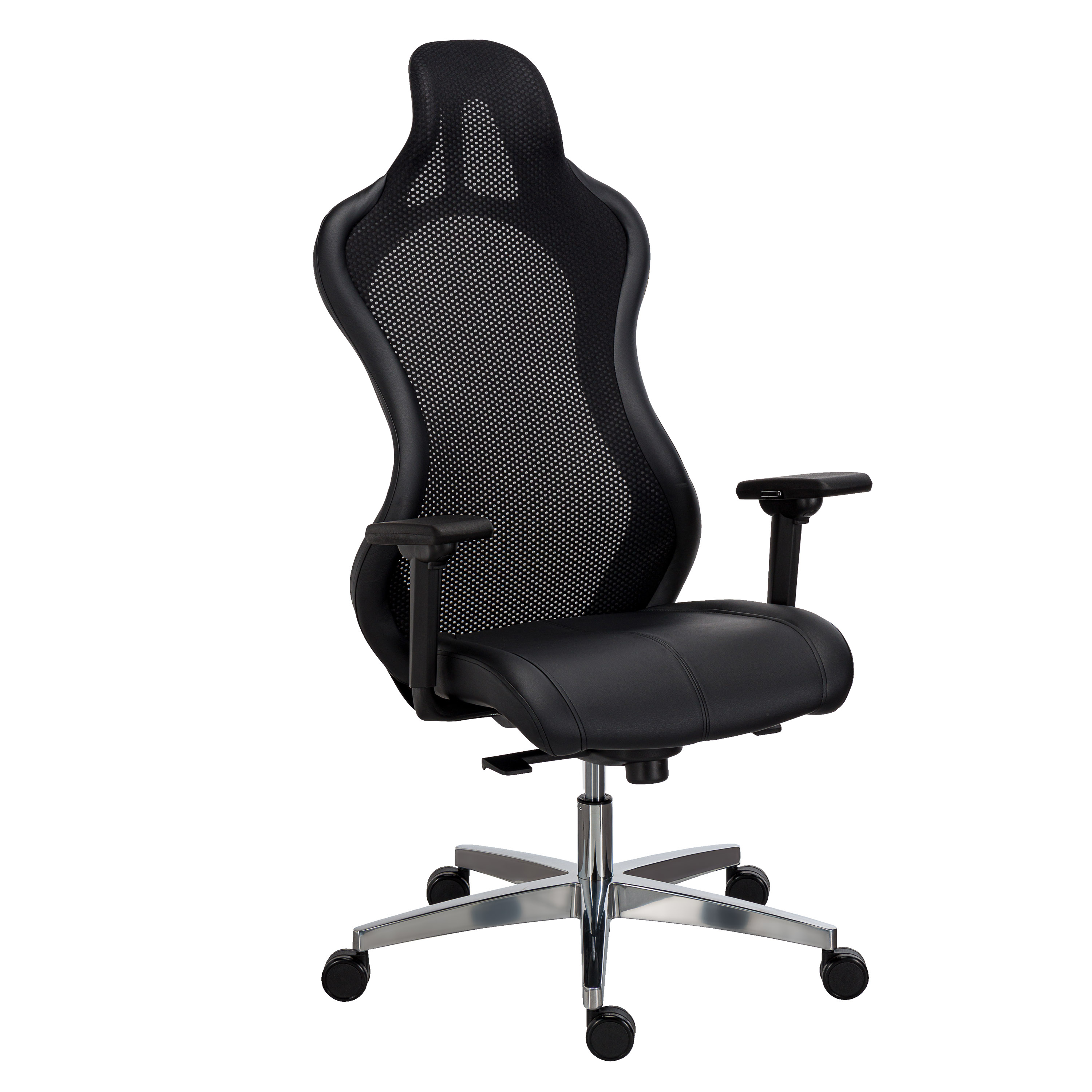Description détailléeLe LEWIS vous séduira par son formidable confort et son allure gamer. Ce fauteuil dispose une ligne galbée et des finitions soignées.Mécanisme du Siège :Type de mécanisme : Synchrone + réglage profondeur d’assiseUsage Intensif 7 h et +Assise :Assise (L x P cm) : 51 x 49Réglage hauteur d'assise (de à cm) : 49 à 54Revêtement assise et dossier : Simili cuirDensité assise (kg/m3) : 30Poids max (kg) : 110Dossier: Dossier (H cm) : 80Mécanisme réglage dossier : FixeLe dossier entièrement en maille permet d’épouser la forme de votre dos tout en le laissant respirer.Accoudoirs :Type d'accoudoirs : Réglables 3DMatière accoudoirs : NylonPiétements:Matière du piétement : AluminiumØ piétement (cm) : 71Type de roulettes : Pour moquette (roues supérieures auto-freinées)Environnement et Normes :Labellisé Intertek GS.Utilisation optimale pour une personne de moins d’1m92.Fabriqué en Allemagne Besoin d’une variante ? Coloris, tailles, dimensions, extensions de gamme, accessoires… Plus de choix avec l’équipe MyBruneauJe formule ma demande.