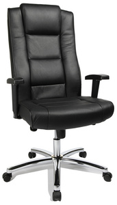 Description détailléeRevêtement: 100 % cuir, rembourrage piqué et sophistiqué, arrière et pièces latérales dans la même couleur simili-cuir. Mécanisme à bascule, doubles roulettes de sécurité, piétement en croix aluminium. Incl. accoudoirs plastique en noir.Capacité: 110 kg Dimensions siège: (L)52 x (P)48 x (H)42 - 51 cm hauteur dossier : 68 cm.Roulettes adaptées au sol dur.