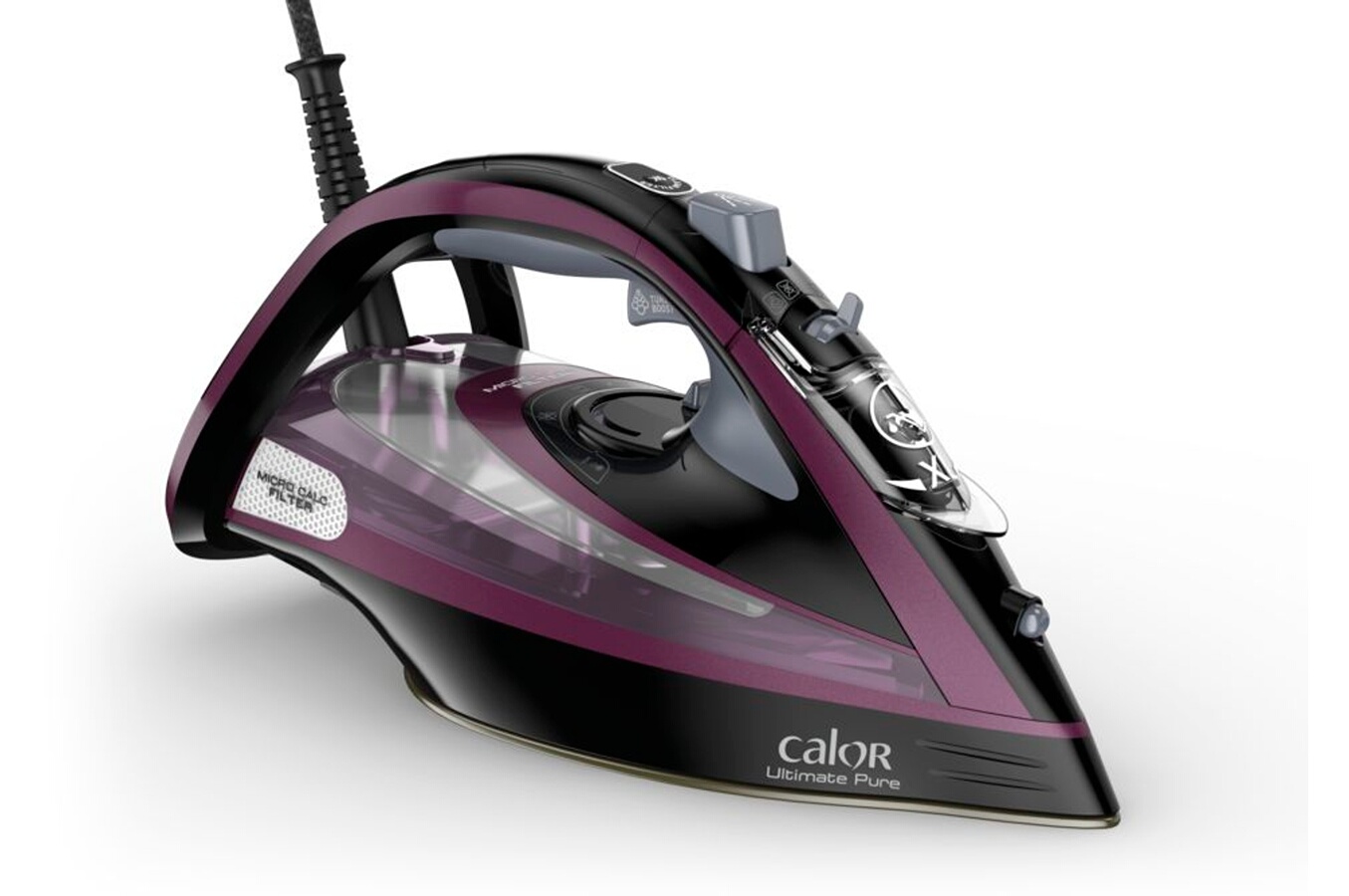 Débit de vapeur (60 g/min) et fonction pressing (240 g/min), Vapeur vertical - Capacité du réservoir : 350 ml, Filtre Micro-Calc : Filtre 100% de la vapeur pour éviter taches et résidus de calcaire, Alerte d'entretien du filtre - Semelle Durilium AirGlide Autoclean